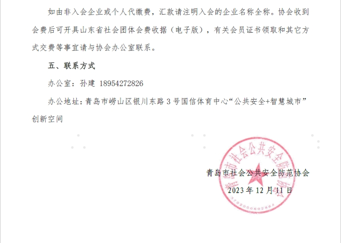 如由非入会企业或个人代缴费,汇款请注明入会的企业名称全称。协会收到会费后可开具山东省社会团体会费收据(电子版),有关会员证书领取和其它方式交费等事宜请与协会办公室联系。